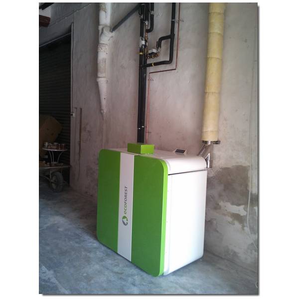 La caldera de pellet CANTINA NOVA de la marca ECOFOREST es una caldera practica  de 30 kW con un sistema de producción de agua caliente con bomba recirculadora para poder calentar radiadores o suelo radiante.